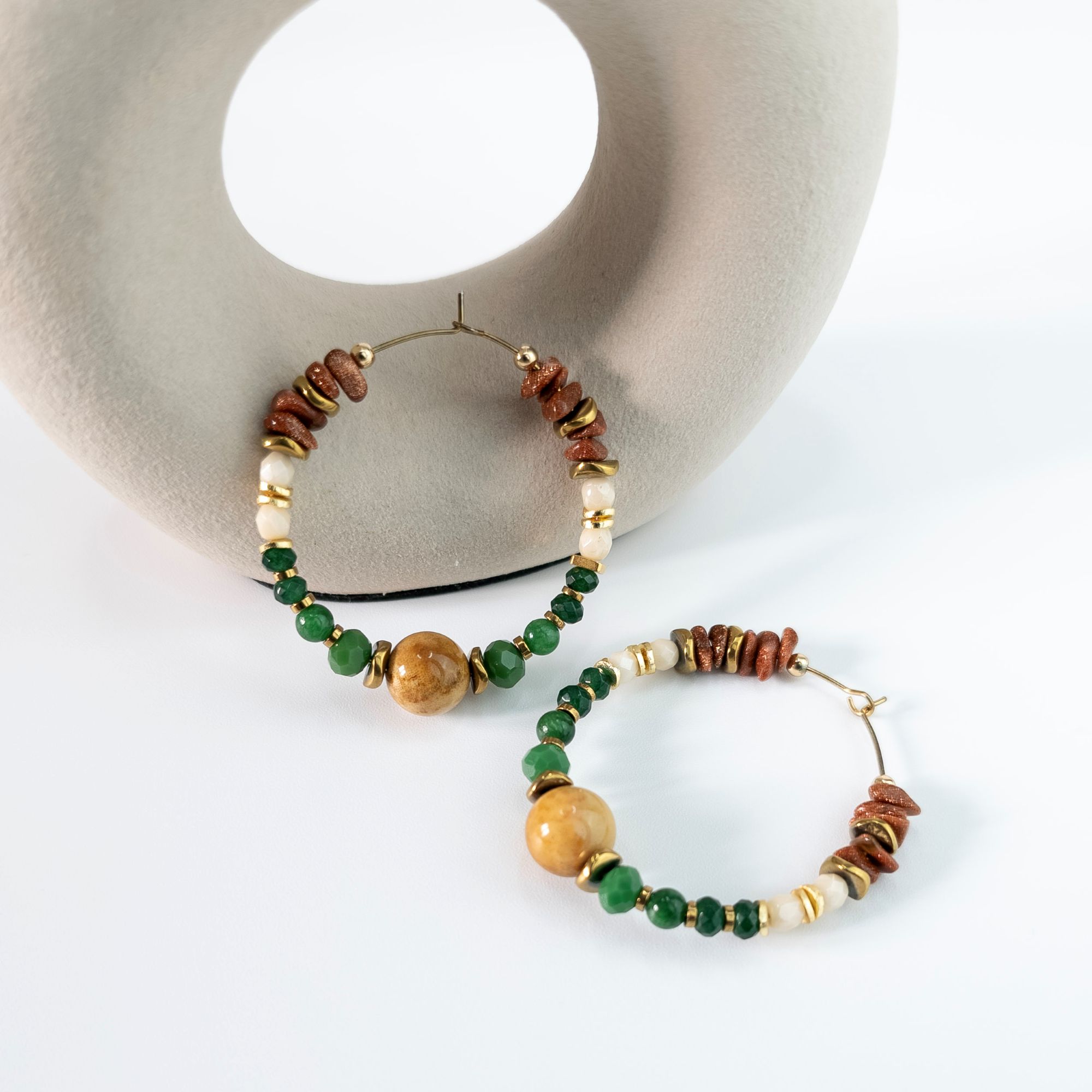 Tous nos bijoux sont entièrement faits main, dans nos ateliers grenoblois. Nous utilisons toutes sortes de perles dont des perles naturelles, toutes choisies avec soin.