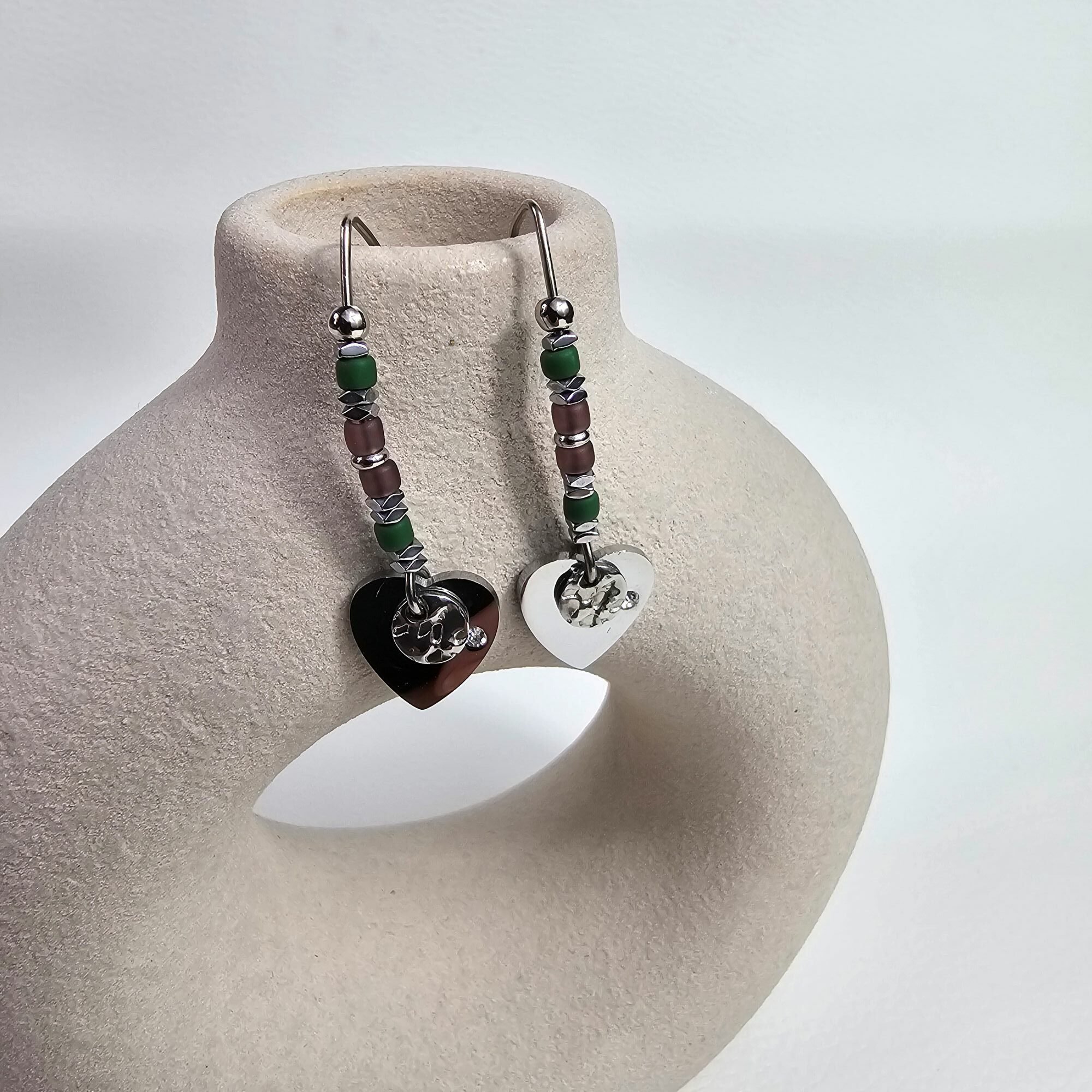 Chaque pièce est unique. De légères différences peuvent apparaitre entre la photo et le bijou reçu, dues aux matériaux naturels et au travail fait main.