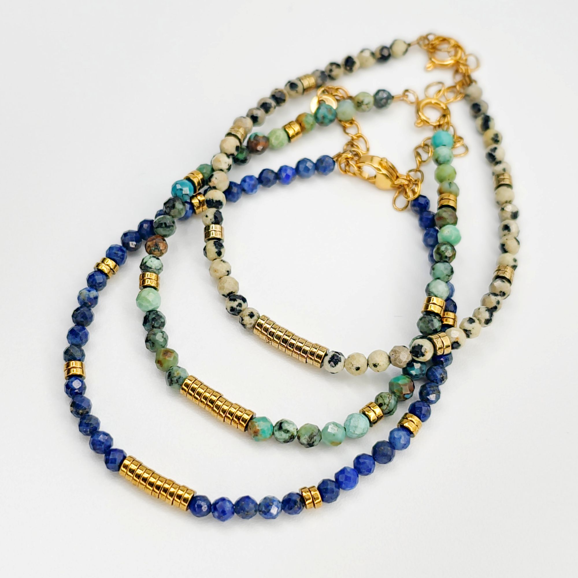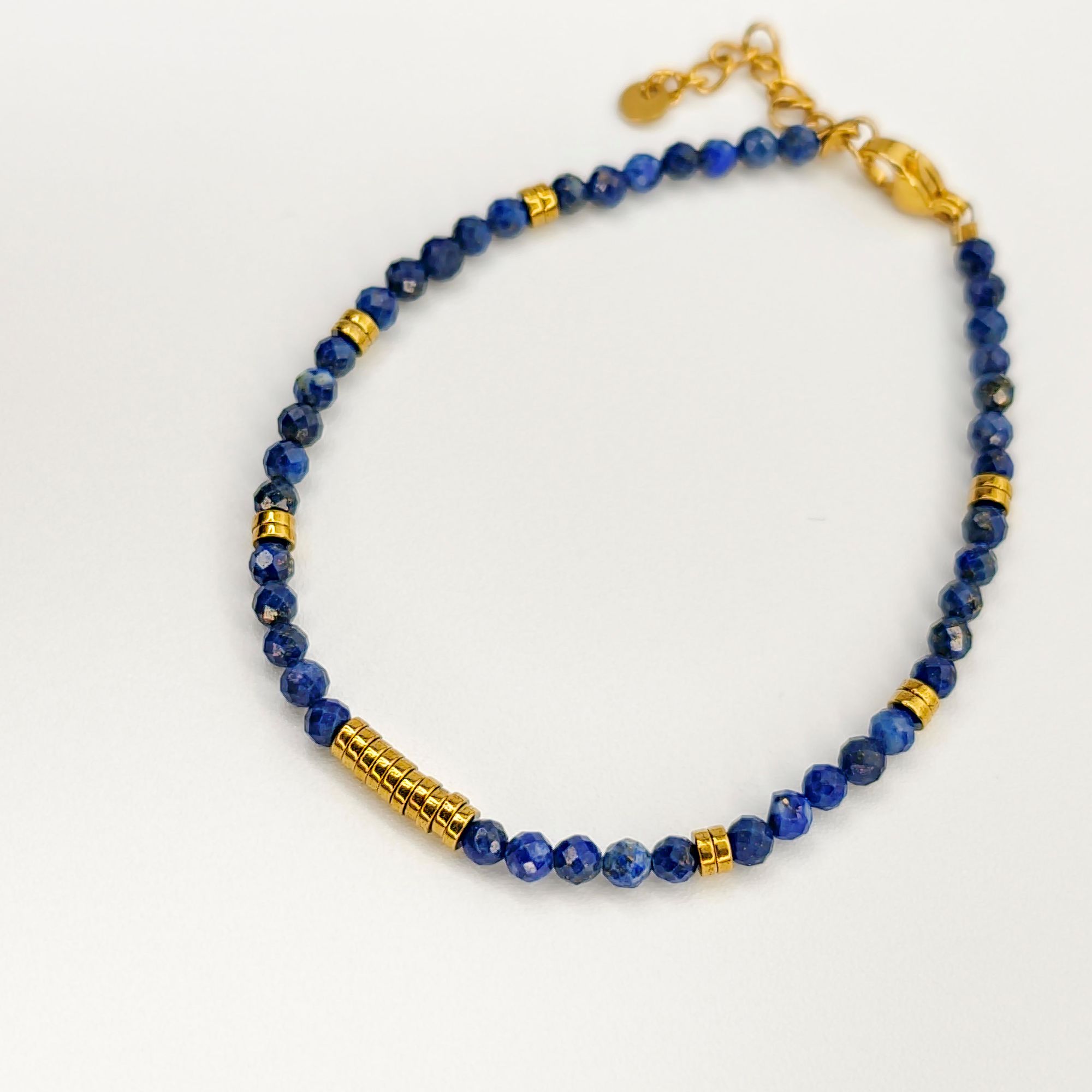 • Pierres naturelles : Lapiz Lazuli, Hématite dorée.