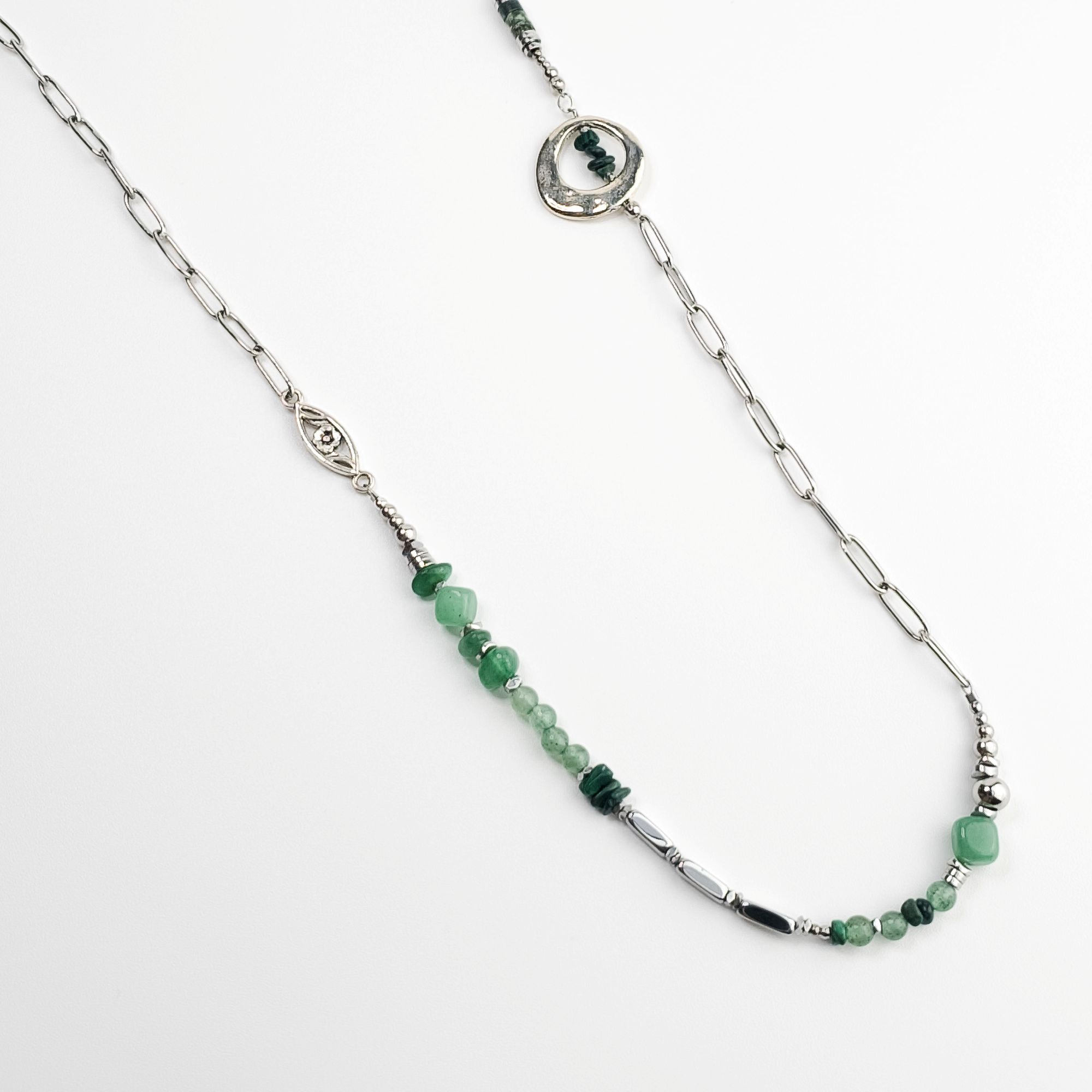 • Pierres naturelles : Aventurine verte, Malachite, Hématite argentée.