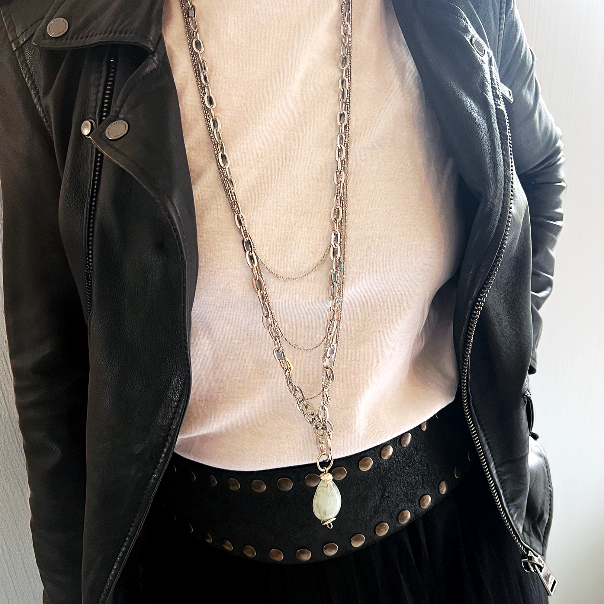 J’ai imaginé ce sautoir sobre et orignal pour une personne aimant le rock