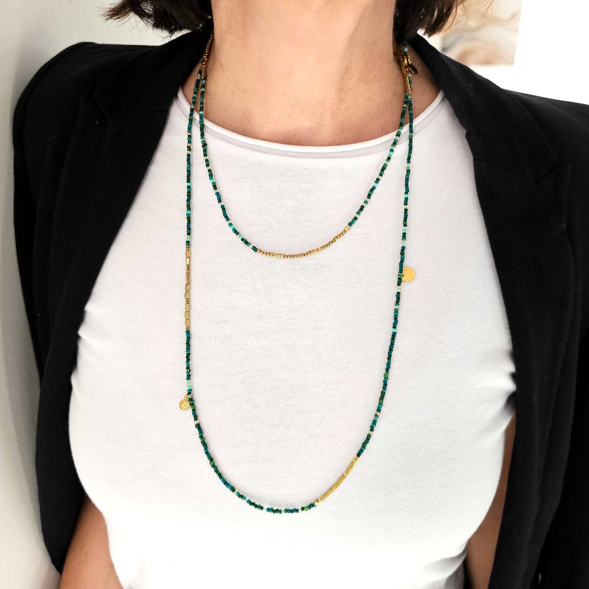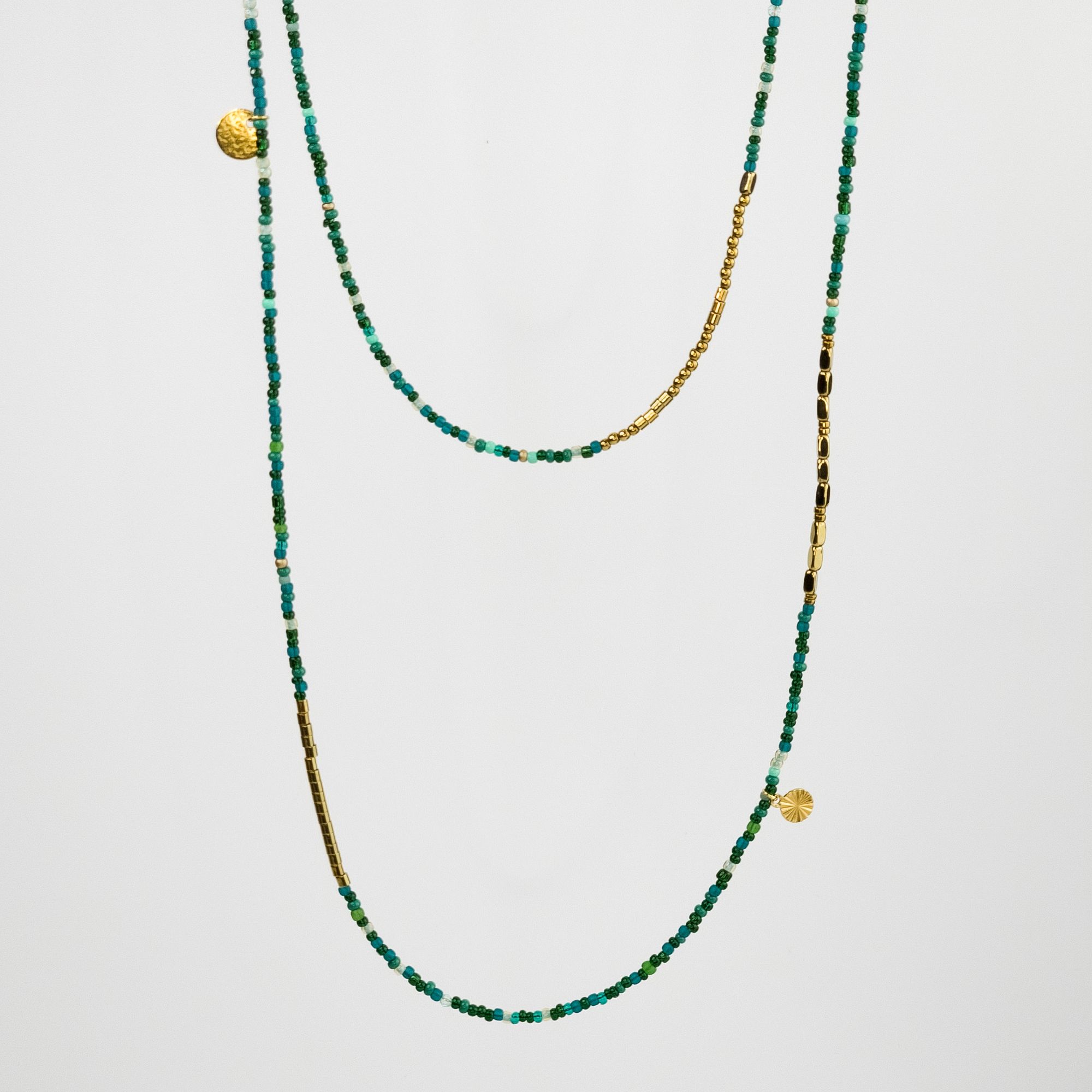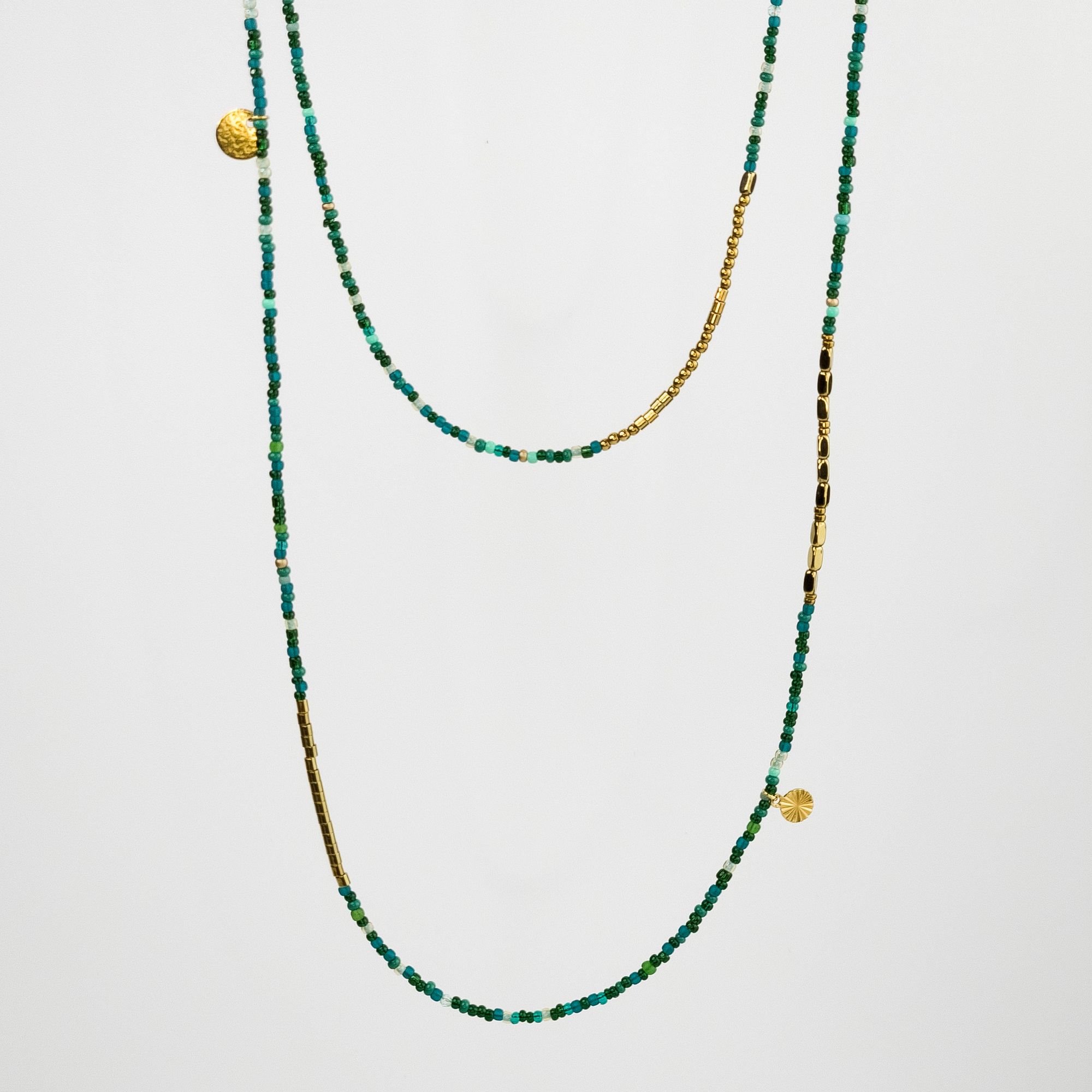 Nos bijoux étant entièrement faits à la main avec des perles naturelles, de légères variations de couleurs et de formes peuvent apparaitre – c’est ce qui rend chaque pièce unique.