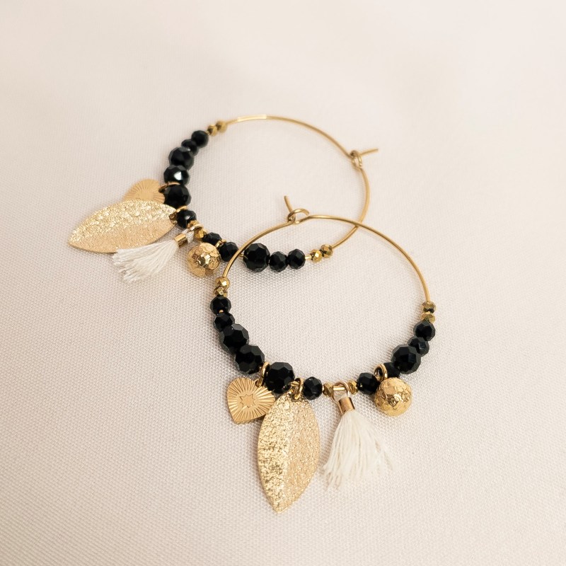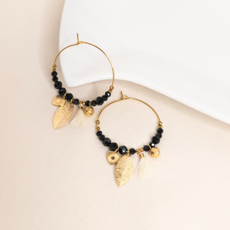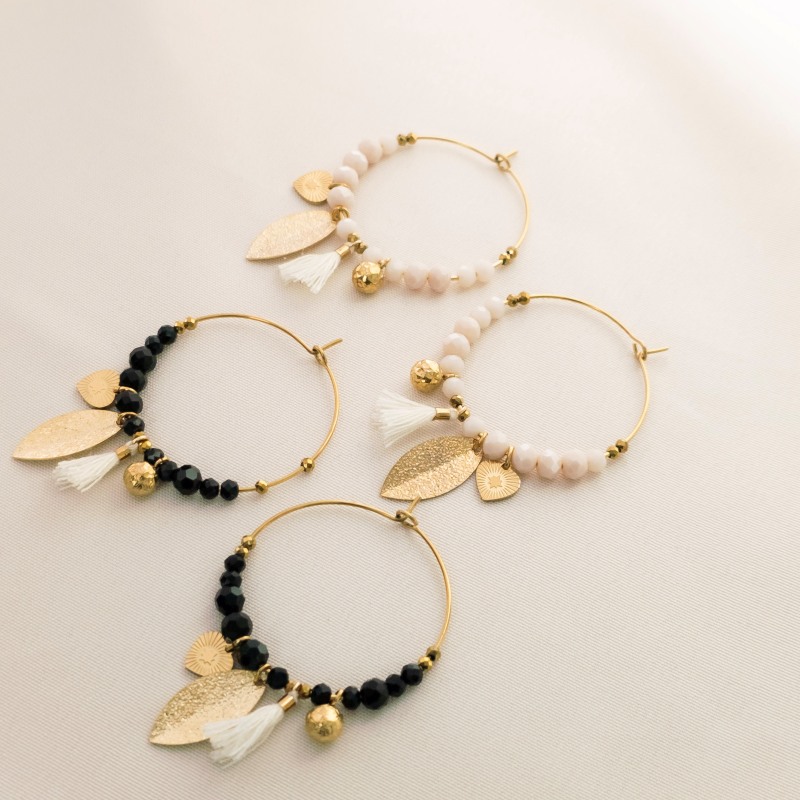 Matériaux ; perles en verre, acier inoxydable, laiton doré à l’or fin
