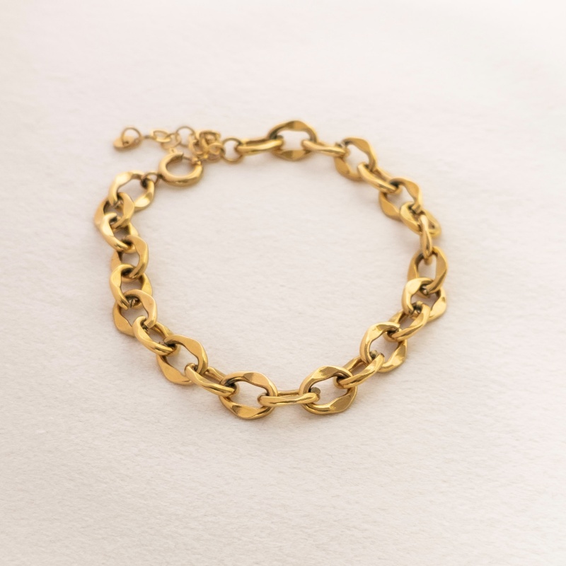 Le Dounia est un bracelet lumineux et affirmé, composé d’une chaîne dorée aux maillons généreux et texturés.