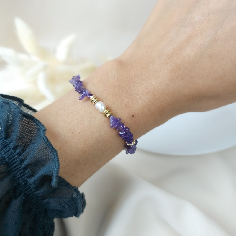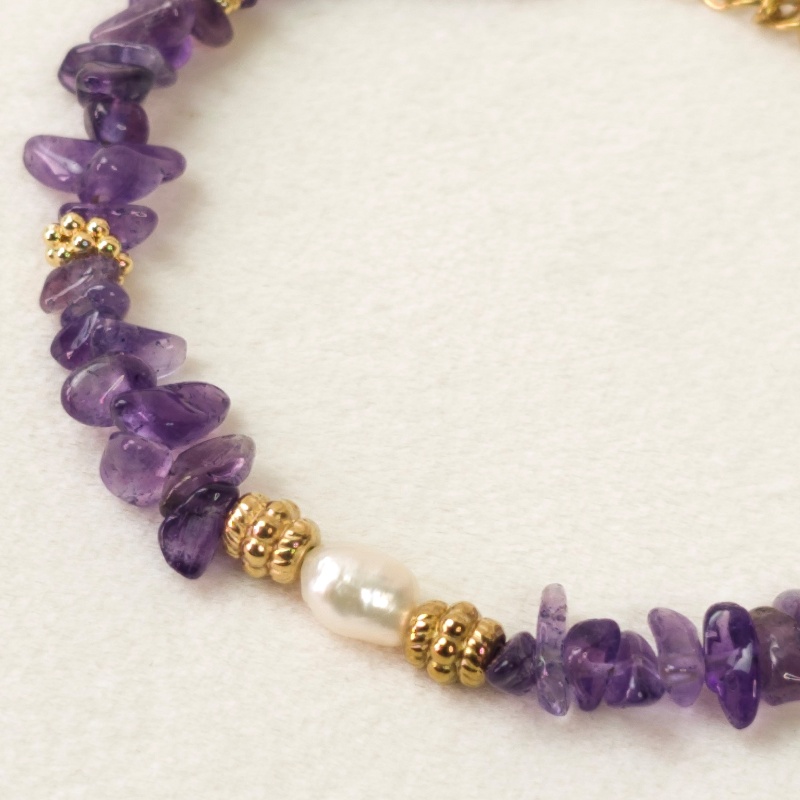 Matière : améthyste, perle d’eau douce, acier inoxydable
