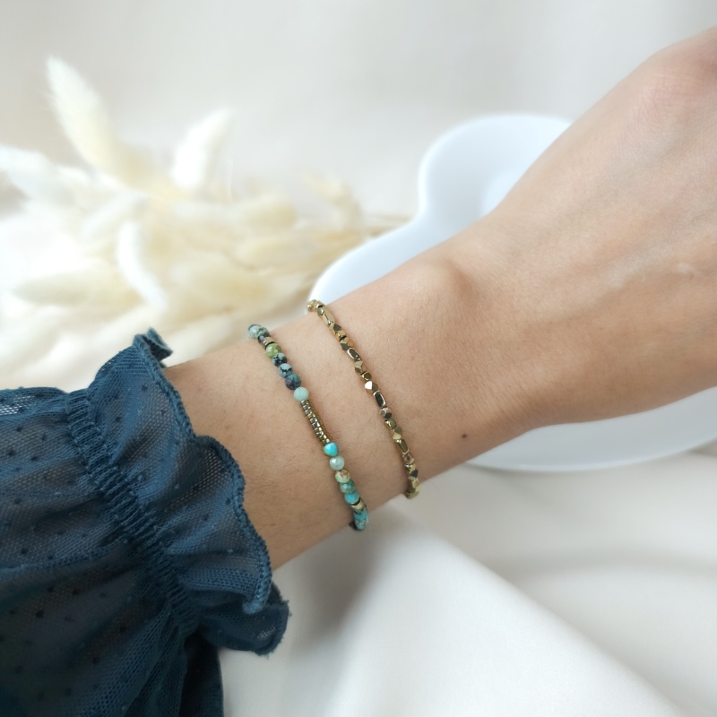 Pierres naturelles : turquoise africaine, hématites dorées