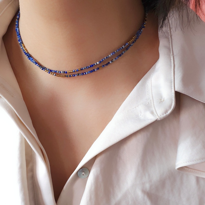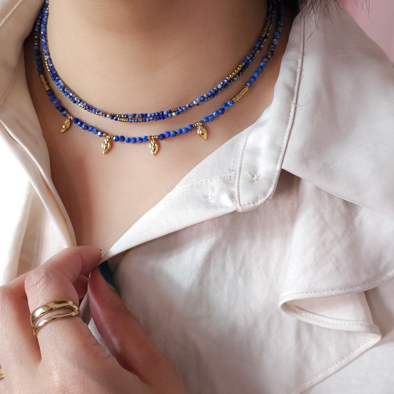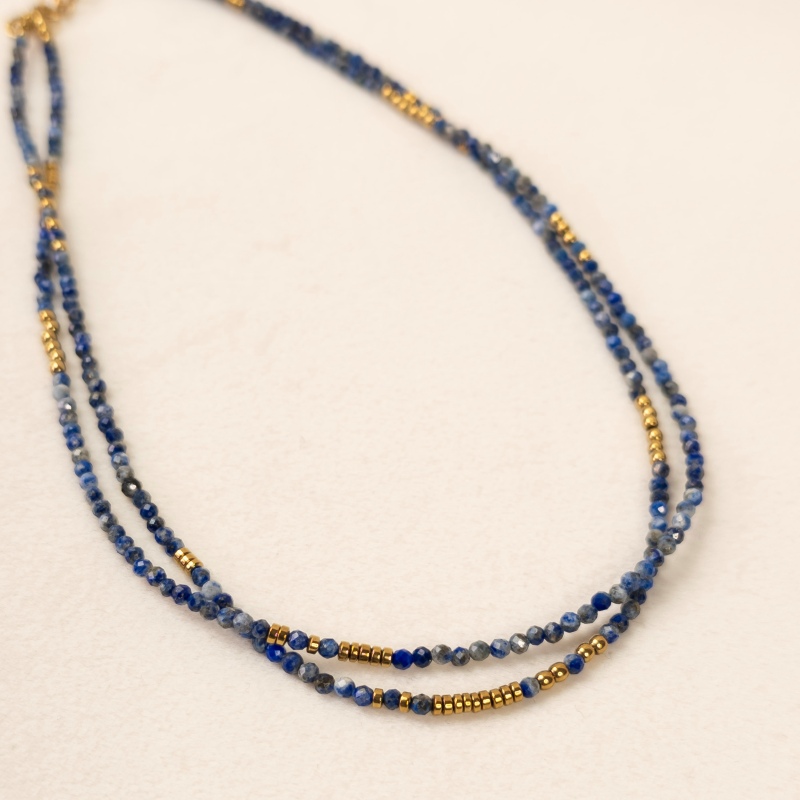 Le collier-bracelet Heddy en lapis-lazuli est un bijou modulable qui accompagne toutes vos envies. Grâce à ses deux brins de perles fines et sa chaîne d’extension, il se porte en bracelet 4 tours ou en ras de cou 2 rangs.